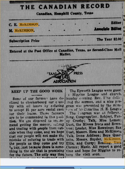 "what has happened to C. E. McKimson who used to run this paper?"