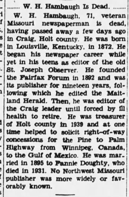 The Pioneer wrote in 1905 "J. Wilkes Moore and H.A. Moore were printers when Webb Williams managed the Pioneer."