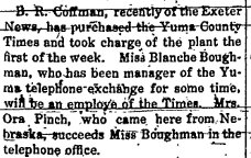 January 22, 1920 "Bruce R. Coffman, formerly publisher of the Yuma County Times, died in Denver Saturday. The body was shipped to Phillipsburg, Kansas for burial. The deceeased recently purchased the Haddam, Kansas, Clipper-Leader and had gone to Denver to visit his brother. Heart failure was the cause of his death."