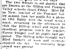 April 1928 " Miss Edna New and pupils of District 14 spent Wednesday picnicking on Old Baldy."