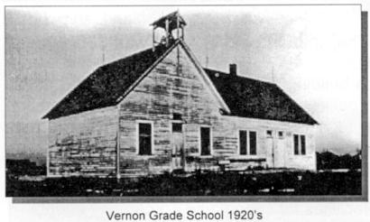 Note: If you have photographs of the 1913-1927 Vernon three-room grade school, the 1921-1927 church/high school building, the "sheep-shed", the teacherage or an early 1950s photo of the school with the gym and lunchroom, I'm begging for a copy for this page.