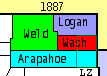 By 1887, the population of eastern Weld County was large enough for voters to demand a split into new counties. The original Weld County was split roughly in half. The southeastern corner became Washington County with the county seat designated as Akron. The northeastern corner became Logan County with the county seat designated as Sterling.