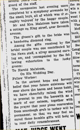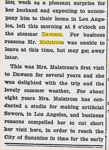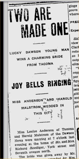 The 1896 directory has the Malstrom name -three at the Ledger - Harold is an apprentice. Still at South G.