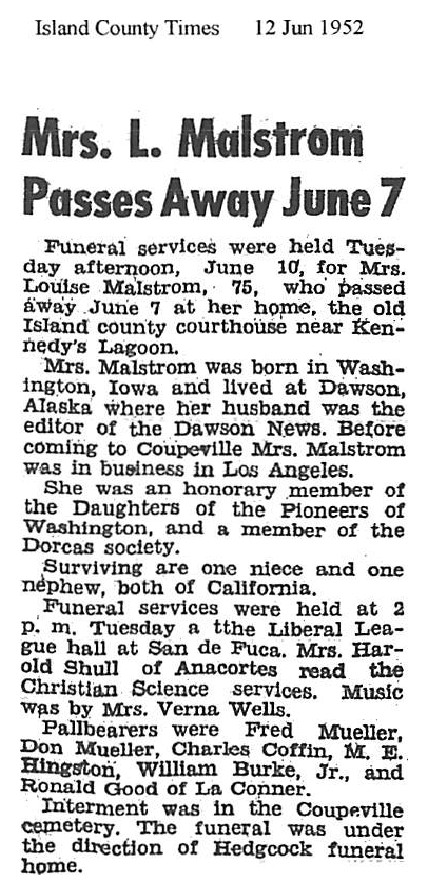 In May 1907 seven-month-old Loraine Mary Malstrom died of bronchitis- Father born Kansas, mother Wisconsin.
