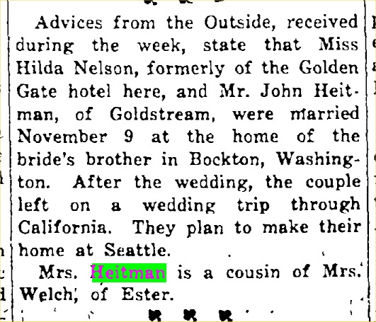 So Ben's going to Tacoma has to be because of Anna Gurine's living there. Johanna immigrated in 1900.