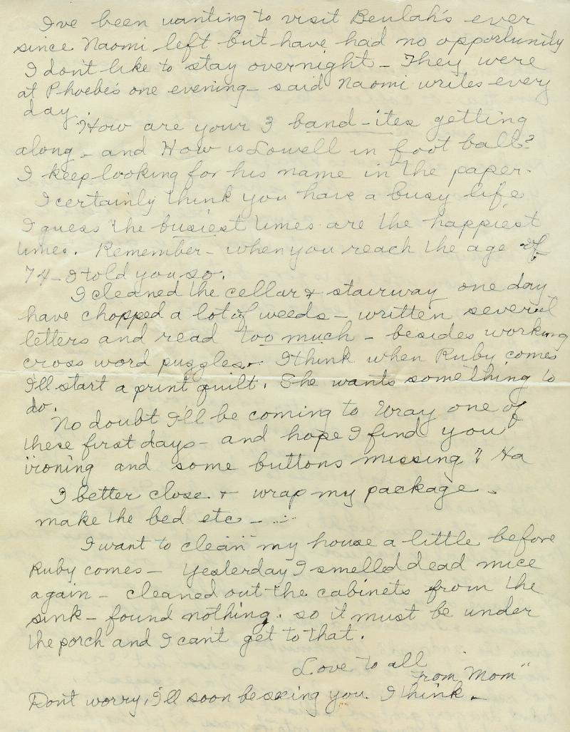 I don't have the rest of this letter. It mentions a lot of neighbors (Hardings, Newbanks, Bates, Schafers, Morans, Barkers) Randy is Max and Bev Schafer's son.