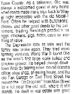 September 1943 "O. H. Oman sustained painful Injuries Wednesday of last week when he fell ten feet from a scaffold at his turkey farm. He was shingling the building when the mishap occurred. An X-ray revealed that there were no broken bones, but he sustained painful bruises on bis back and side."