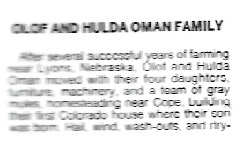 September 1948 "O. H. Oman entered St. Joseph's hospital in Denver on Monday and yesterday submitted to major surgery. His son-in-law, Bert Monk, accompanied him to Denver and planned to return home last night. Mrs. Monk is spending the week with her mother who is somewhat improved from her illness.