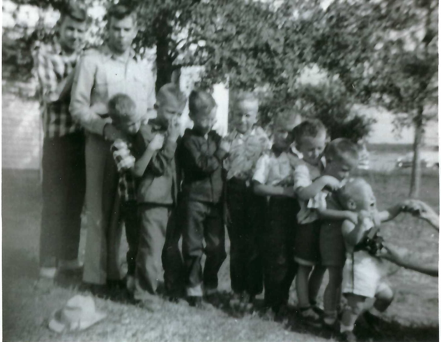 Because Rodney was born in 1953, this was probably taken in 1954 or 1955. It was the ten male cousins. If anyone has a photo of the ten female cousins, we would appreciate it.