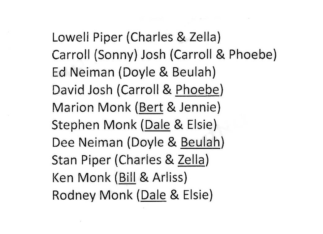 Carroll (Sonny) Josh, David Josh, D.E. Neiman, Rodney Monk, and Patty (Monk) Spellman.