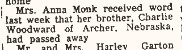April 30, 1925 "William Woodward of Newark Nebraska was visiting at the home of his sister Mrs. Albert Monk Sunday.