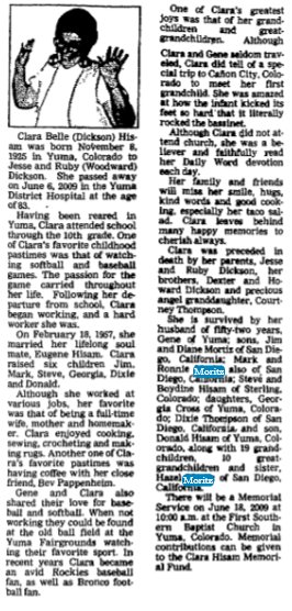 From the Yuma, Colorado Pioneer - March 22, 2001 [brackets are added information]