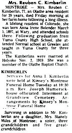 Monday afternoon for Mrs. Rube Kimberlin, who is moving to Montrose, Colo."