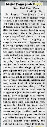 Joshua was in Yuma County, and in March 1899 "Josh Boyd and family go to