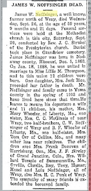 November 14, 1929 "Maudie May Noffsinger was born Oct. 30, 1888 at Skidmore, Nodaway County