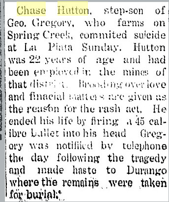 October 1925 "H. H. Hutton, former well known resident of the San Juan district,
