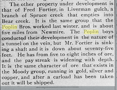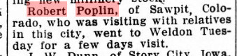 April 1895 "R. Poplin, an Eastern Colorado drouth sufferer, has located in the dairy