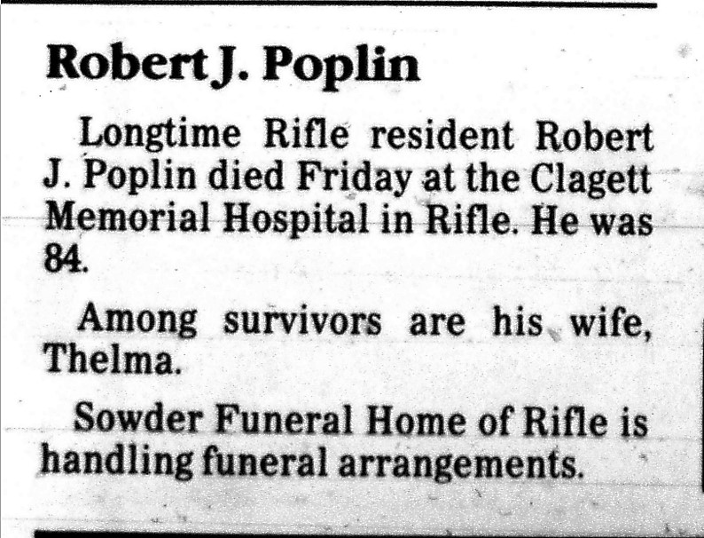 April 1895 "R. Poplin, an Eastern Colorado drouth sufferer, has located in the dairy