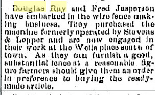 June 1899 "Doug Ray is making hog fence for Mrs. Mason."