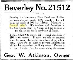 December 1912 Yuma "Sanford Allen, who has been here for several weeks looking after his land