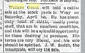July 1925 Aurora " W. D. McGinnis and wife and Wallace Grant and wife, of Denver, spent Sunday at the Dr. Crawford home."