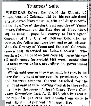April 1885 Pueblo "Mr. Robert Daniels, of Rosita, spent yesterday in the city. He goes west to-day."