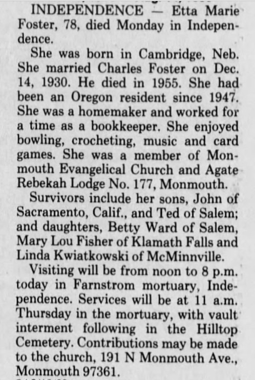January 30, 1964 "Funeral services were held at Cambridge Monday afternoon