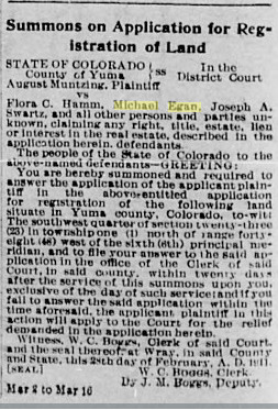 Kate Egan proved up a quarter in section 19, 1N 47W in 1894.