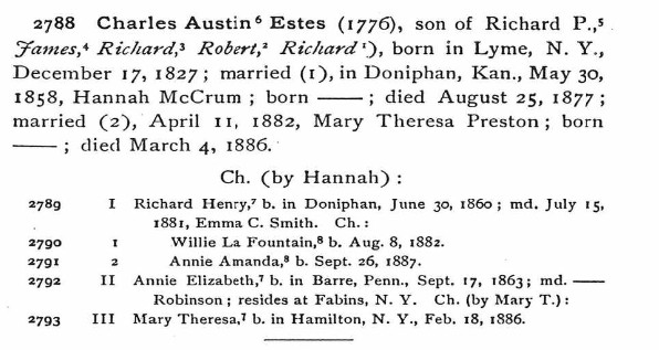 Charles A. "Ester", 30, married Hannah G McCrimm on 13 May 1858