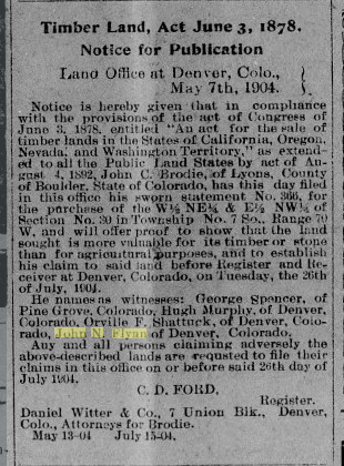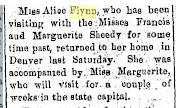 July 1907 "Mrs. Flynn and daughter, who have been visiting at the home of her brother, L. E. French, left Thursday for Denver."