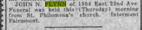 December 1906 "William Flynn visited Sunday at the home of his sister, Mrs. W. A. Sheedy."