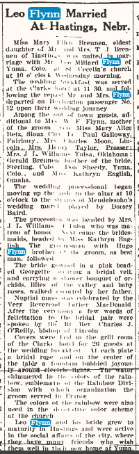 "Information reaches this office that Wm. Flynn, of the firm of Flynn & Sheedy of this place and who went east a few weeks ago, has since been married. Success Billy."