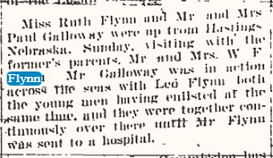 June 1907 "Mrs. W. A. Flynn and daughter, Miss Lois, of Michigan are visiting at the home of her brother, L. E. French."