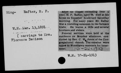 I was born Nov. 23, 1862. I went to school at Stone Quarry, until I was 13 yrs old. I got to the 5th grade. In February, 1877, my brother and I came to Harvard, Nebraska. We operated a store there two years. Then we went to Yuma, Colorado, and filed on land. I filed on a homestead and timber claim. I lost the timber claim but still own the homestead and my brother's which I bought later from him. The land brings me a little money in each year. It is located 4 miles south and 1/2 miles of Yuma.