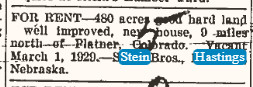 July 1920 "Mr. and Mrs. H.E. Stein and Mrs. Riley Stein and baby, who had been