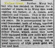 August 1903 Wray "Wallace Grant went to Denver Monday morning to rustle brick layers for the court house."