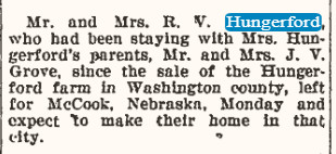 May 1928 Yuma "Mrs. Hazel Hungerford and little daughter went up to Denver to visit with relatives for a few days."
