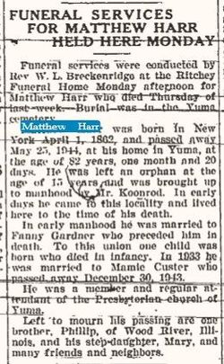 Mamie 1943 and Matthew 1944 Harr are buried in the plot in Yuma with Roy Bemish dying 1899,