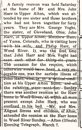July 1901 "Matt Harr left Sunday night for Whiting, Ind., where he will