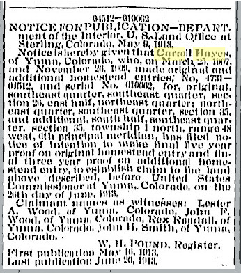 Carroll proved up 240 acres in sections 26 and 35, 1N 48W in 1913.