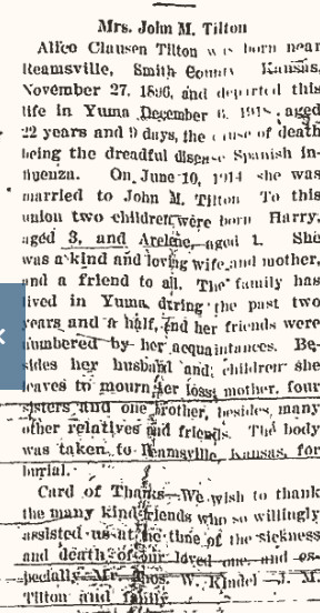 Lizzie's sister Alice married John M. Tilton and moved to Yuma, where John