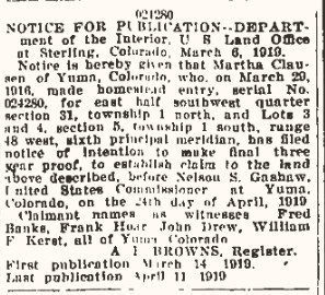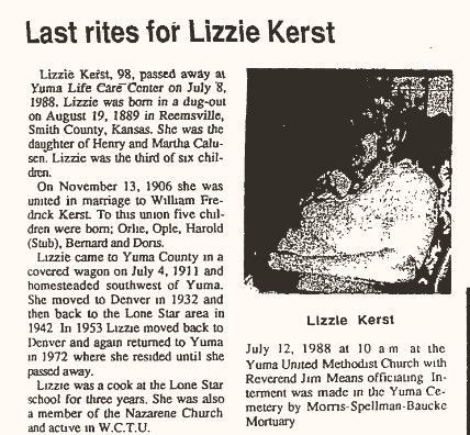 Lizzie's mother Martha claimed land near hers in Yuma County