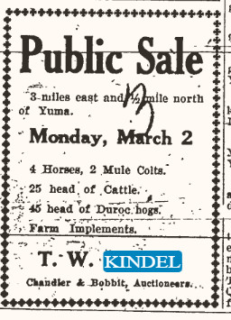 In 1940 Yuma, Thomas W. Kindel 50, California,