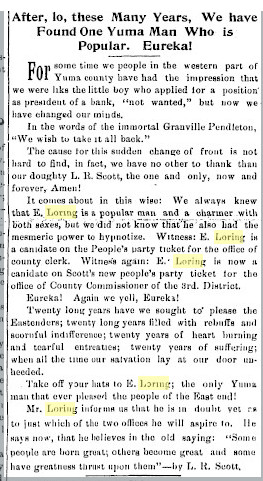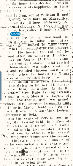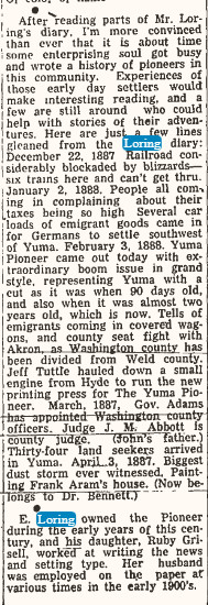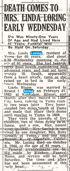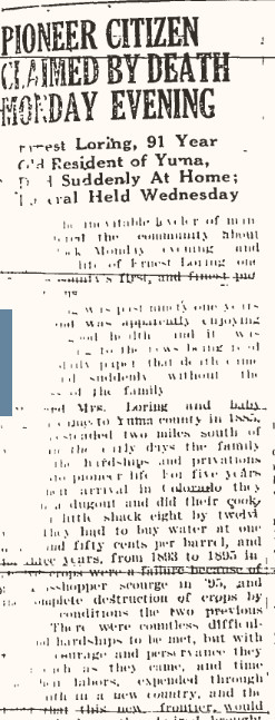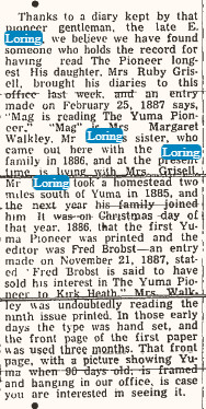 Mr. Loring was born in Yuma on July 23, 1904, and attended grade and high schools here.
