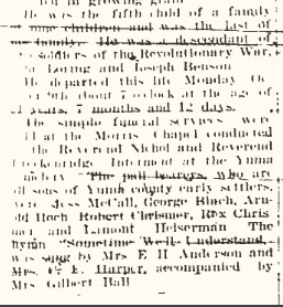 DEATH 9 OCT 1892 • Yuma,