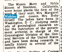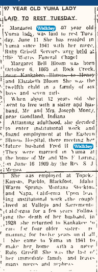 May 1951 "Mrs. Margaret Walkley received word last week of the death of her brother, David Bloom, at the Soldiers Home at Yountville, California on May 14.