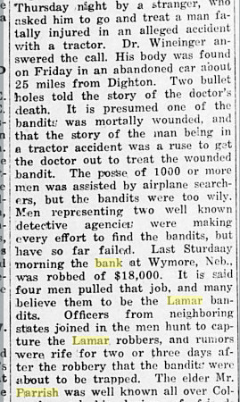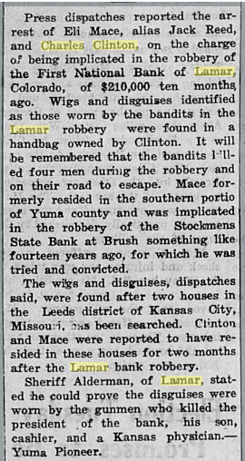 in connection with the robbery of the First National bank at Lamar on May 23, 1928,