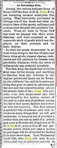 September 1882 Silver Cliff "A.N. Parrish will open out tomorrow with a full line of