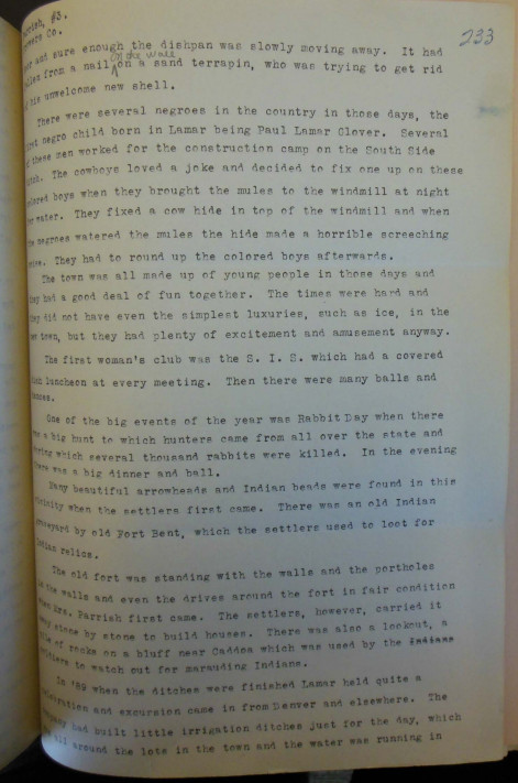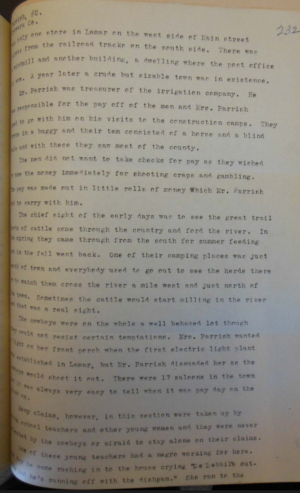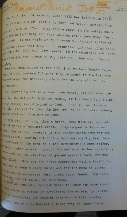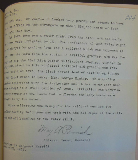 In 1912 the members of the Colorado Senate included ". Twenty-fifth District (Las Animas, Bent, Baca and Prowers Counties - A. Newton Parrish (Holdover Republican). "