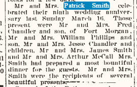 Patrick M. Smith Age: 24, married Catherine A. Chandler on 16 Mar 1921 in Yuma County, Colorado.